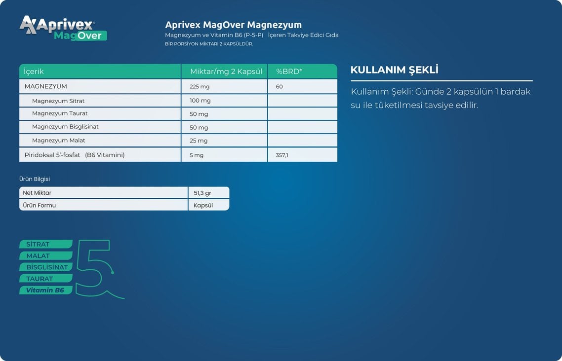 Aprivex Magnezyum 5 Li Etki 60 Tablet Vitamin B6